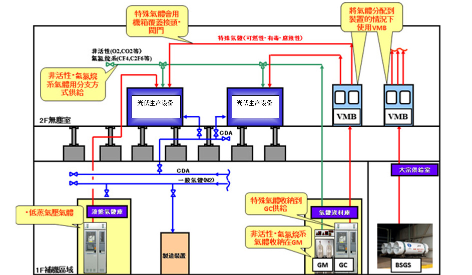 特種氣體是光電子、微電子等領(lǐng)域,特別是超大規(guī)模集成電路、液晶顯示器件、非晶硅薄膜太陽能電池、半導(dǎo)體發(fā)光器件和半導(dǎo)體材料制造過程不可缺少的基礎(chǔ)性支撐源材料。它的純度和潔凈度直接影響到光電子、微電子元器件的質(zhì)量、集成度、特定技術(shù)指標和成品率,并從根本上制約著電路和器件的精確性和準確性。沃飛科技提供太陽能光伏工廠所使用的高純度氣體(O2/Ar/N/H2/He等)、特氣(SiH4/GeH4/PH3/AsH3/SbH3/B2H6/BF3/NF3/PF3/PF5/CF5/CF4/C2H6/C3F8等)綜合供氣系統(tǒng);排氣處理、監(jiān)視系統(tǒng)的綜合管理系統(tǒng);建立以安全為第一的特氣管理輸送系統(tǒng)。從設(shè)計、選型、制造、安裝、測試、調(diào)試和系統(tǒng)托管服務(wù)