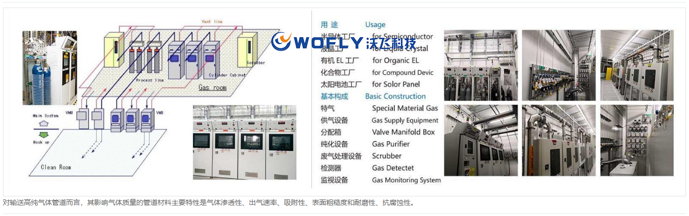 選用滲透性小、出氣速率低、吸附性差的材料。目前超大規(guī)模集成電路前工序高純氣體輸送系統(tǒng)管道材料采用不銹鋼光亮退火管(SS304BA、SS316BA)、不銹鋼電拋光管(SS316L-EP)等,但是對(duì)要求控制高純氣體中總雜質(zhì)含量≤1.01.0×10-6及以下的管材應(yīng)用SS316L-EP管。