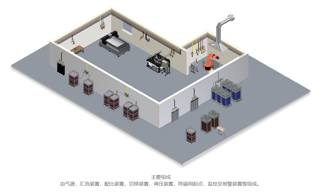 優(yōu)勢:提高生產(chǎn)效率:通過管道網(wǎng)絡(luò)快速供氣,減少氣瓶更換時間。