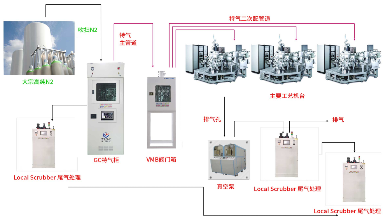 電子特氣管道系統(tǒng)的主要作用講解。電子特氣管道系統(tǒng)是半導體、顯示面板、光伏等高端制造業(yè)中不可或缺的核心基礎(chǔ)設(shè)施,其主要作用是為精密制造過程提供高純度、高穩(wěn)定性、高安全性的特種氣體輸送解決方案。以下從功能定位、技術(shù)特性、應(yīng)用場景三個維度展開詳細講解: