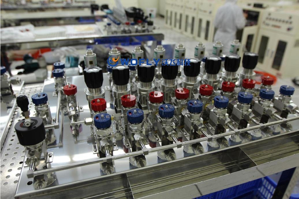 特氣輸送面板是氣源部分非常重要的控制單元。一般工藝氣體從鋼瓶出來,經(jīng)過高壓控制盤面時,都實現(xiàn)了一次調(diào)壓、過濾、流量穩(wěn)定、吹掃、抽真空、壓力偵測等功能。不同的氣體和工藝需求,可以根據(jù)實際情況定制具體功能?,F(xiàn)階段,越來越多的高校實驗室引入了ICP、PVD、PEVCD等設(shè)備進(jìn)行芯片鍍膜、刻蝕方面的研究,這些工藝氣體多是硅烷、乙烯、溴化氫等毒腐、易燃易爆性氣體,對于氣源的控制要求非常高,也給供氣面板提出了很多要求。