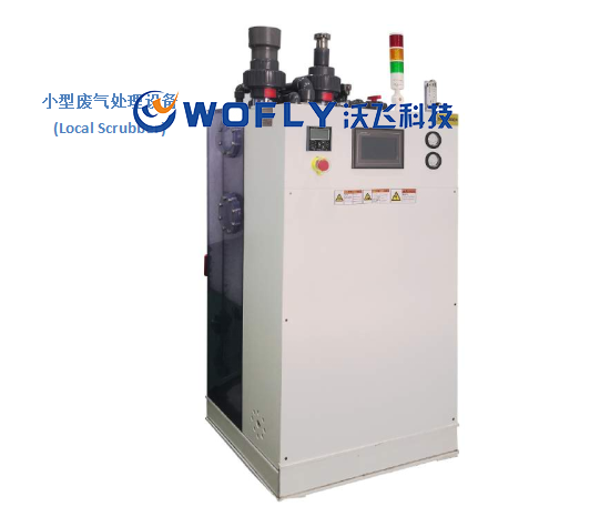 由于工作區(qū)域多半離中央廢氣處理系統(tǒng)遠(yuǎn),常因氣體特性導(dǎo)致管路中結(jié)晶或粉塵堆積造成管路堵塞后導(dǎo)致氣體泄漏,嚴(yán)重者甚至引起爆炸,無法確保現(xiàn)場工作人員之工作安全。因此在工作區(qū)域,尾氣處理裝置應(yīng)靠近GR、GC等特種氣體設(shè)備布置?;蚺渲眠m合工藝氣體特性的小型廢氣處理設(shè)備(Local Scrubber),以減少在工作區(qū)域滯留的廢氣確保人員安全。
