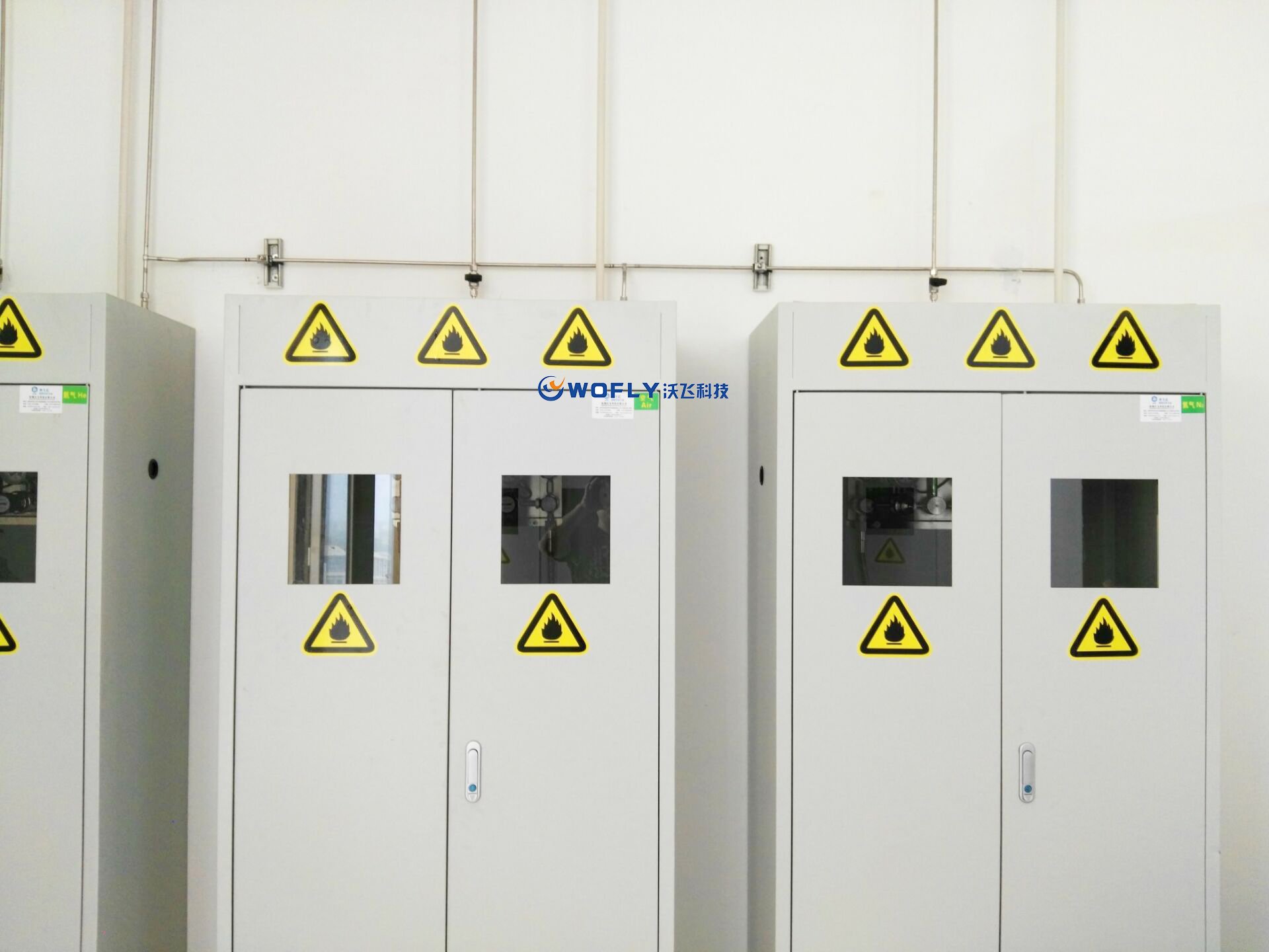 同時,按照國標要求,將所用全部氣體存放于儲氣間,并實現(xiàn)集中輸送,組成實驗室集中供氣系統(tǒng)。實現(xiàn)人氣分離,保障分析測試人員在實驗中免受有毒有害氣體的侵害。